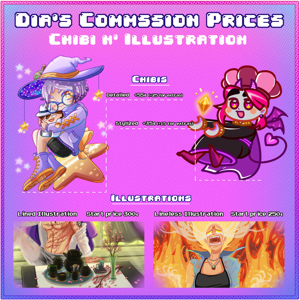 Any further unmentioned additions towards the commissions (ex. additional details in Illustration pieces, Alts to Character Designs, etc.) will be accounted for in the pricing.